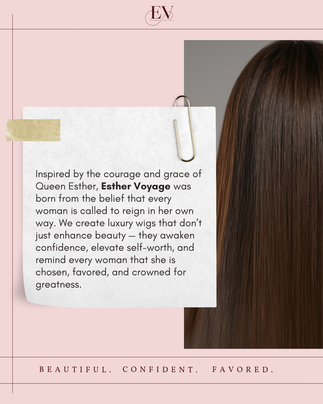 At Esther Voyage, every unit is crafted with intention. Our wigs are made-to-order, hand-customized, and quality-checked to ensure you receive a piece that is beautiful, long-lasting, and worthy of your crown.